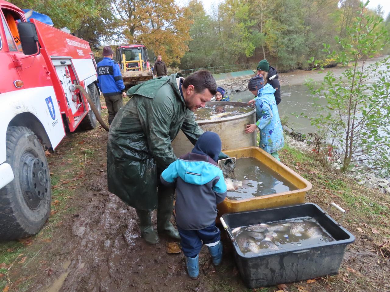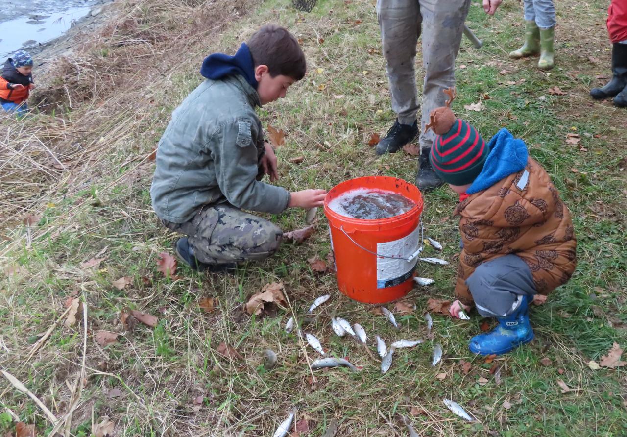 Cehničtí rybáři za velké pomoci dětí lovili obecní rybník Křídlo