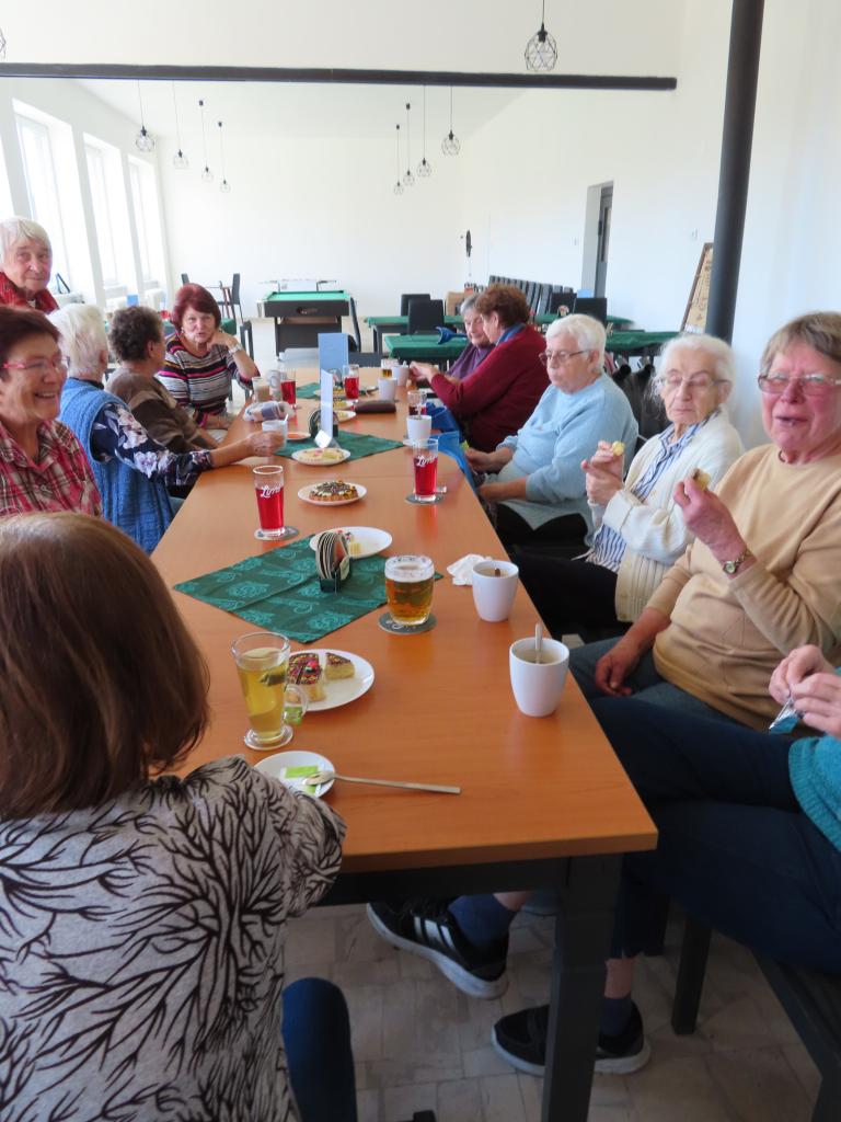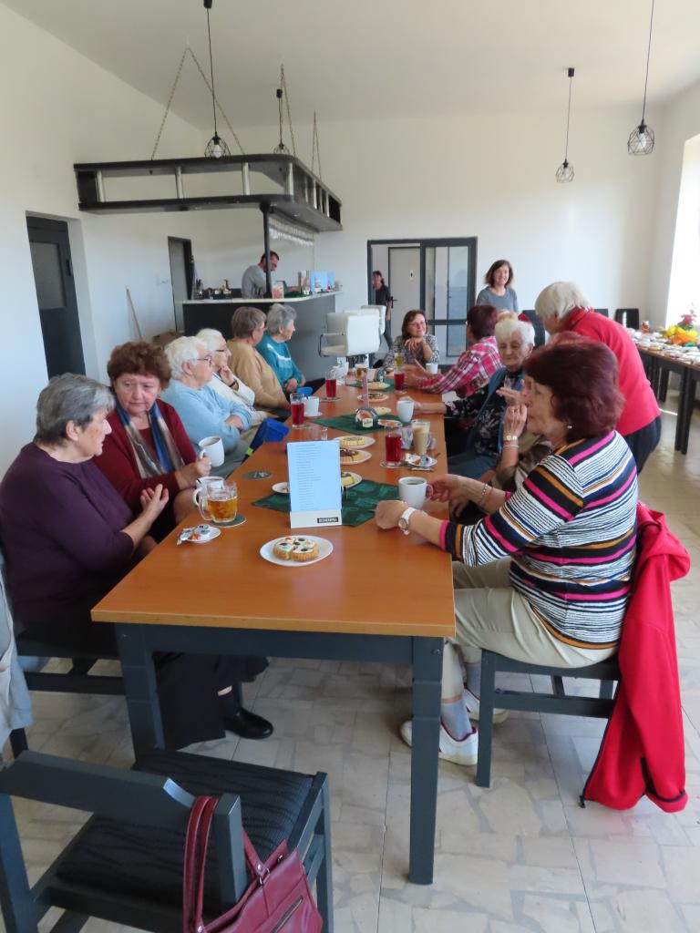 Cehnické Senzační Seniorky si přišly prohlédnout výstavu hnětýnek a pár jich i při kafíčku ochutnaly.