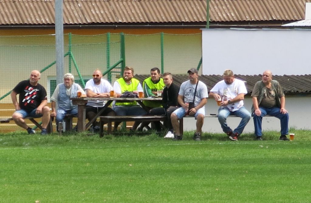 V pozadí na tribuně naši věrní fanoušci.